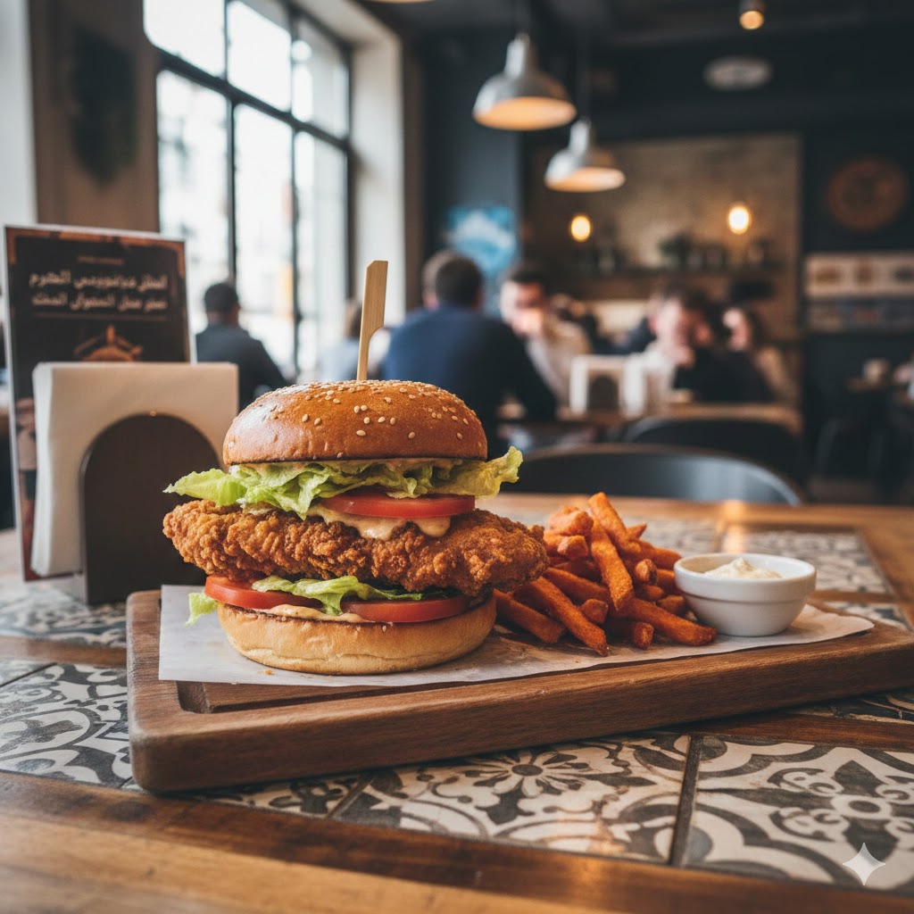 الطريقة: يُقلى الدجاج المتبّل ويُقدّم في خبز برجر مع طبقة من الجبن الذائب—مثالي لمحبي النكهات الحارة.