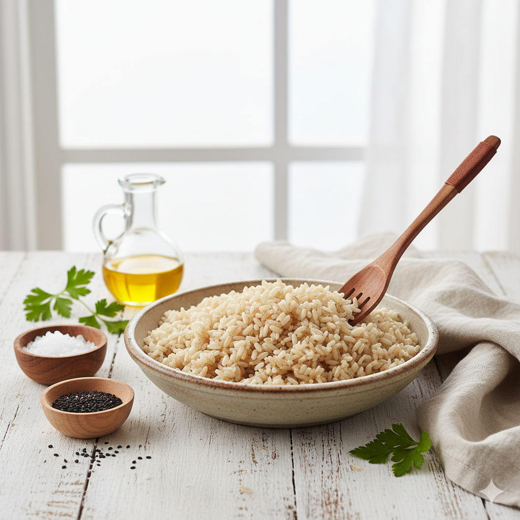 تعتمد هذه الطريقة على طهي الأرز بالبخار، مما يحافظ على العناصر الغذائية دون إضافات دهنية، ويضمن نكهة صحية وخفيفة تناسب برنامجك الغذائي.