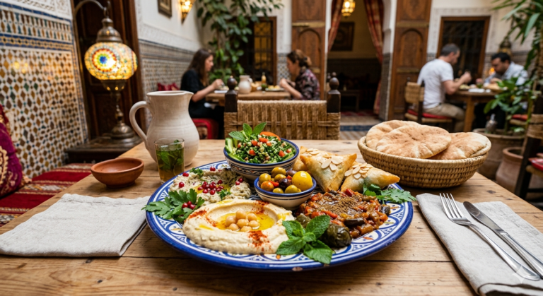 - المقبلات الجانبية: لا يكتمل الأرز بالزعفران والدجاج بدون « الدقوس » الحار (صلصة طماطم بالثوم والفلفل) أو « سلطة الزبادي بالخيار ». هذه الإضافات توازن حرارة البهارات وتضيف انتعاشاً للطبق