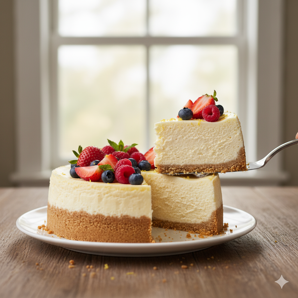 بعد التبريد والتزيين، ستحصلين على تشيز كيك فاخر بعطر الليمون ولمسة الكريمة الغنية، مثالي لتقديمه في المناسبات الخاصة أو الاستمتاع به كتحلية منزلية أنيقة. كل شريحة تجربة من الطعم الفاخر لا تُنسى!