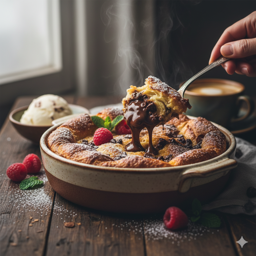 بودينغ الكرواسان بالشوكولاتة: حلوى لذيذة وسهلة التحضير