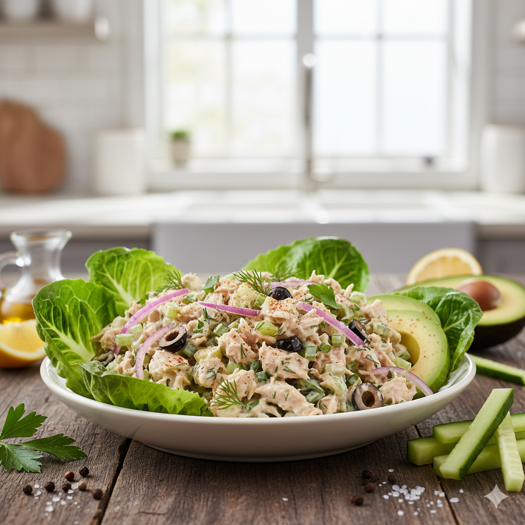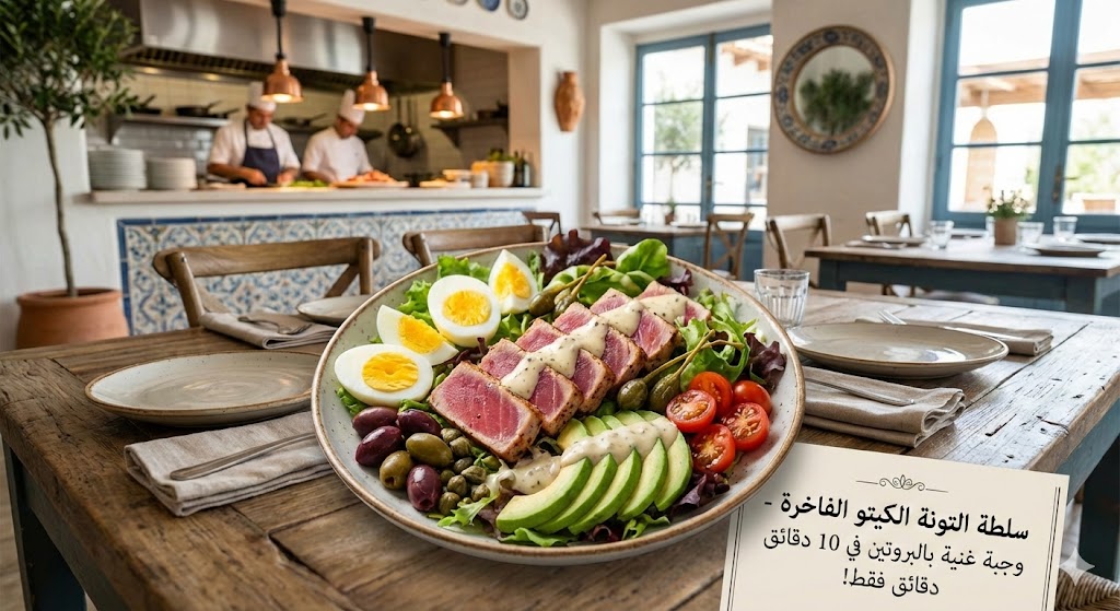 سلطة التونة الكيتو الفاخرة – وجبة غنية بالبروتين في 10 دقائق فقط!
