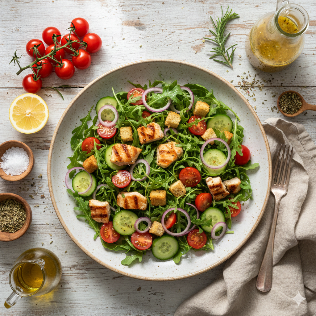 تُعد سلطة الدجاج بالجرجير والطماطم من الوصفات الصحية المثالية التي تجمع بين البروتينات والخضروات الطازجة، لتمنحك وجبة متوازنة خفيفة ومغذية. تعتبر هذه السلطة خيارًا رائعًا للغداء أو العشاء، خاصة لمن يتبعون نظام غذائي صحي.