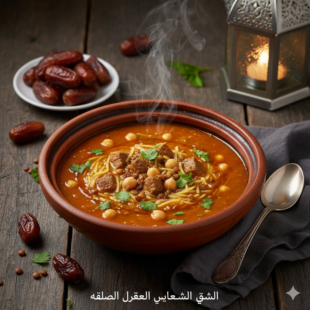 قدمي شوربة الحريرة ساخنة مع التمر والخبز المحمص لتجربة إفطار رمضانية متكاملة تجمع بين الطعم الأصيل والقيمة الغذائية العالية. مع كل ملعقة، ستشعرين بالدفء والطاقة، مما يجعلها خيارًا مثاليًا للعائلة، مع إمكانية تعديل الوصفة لتناسب النباتيين أو لمن يفضلون قوامًا أكثر كثافة.