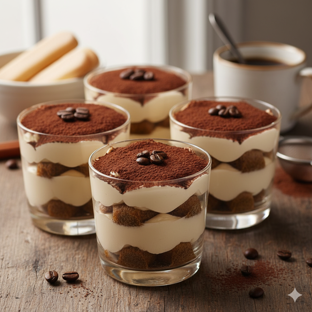 دلّلي نفسك وضيوفك بطبقات من القهوة والكريمة الغنية! نقدم لك طريقة سهلة ولذيذة لتحضير أكواب التيراميسو، لتستمتعي بتحلية كلاسيكية إيطالية في شكل فردي أنيق وسريع التحضير