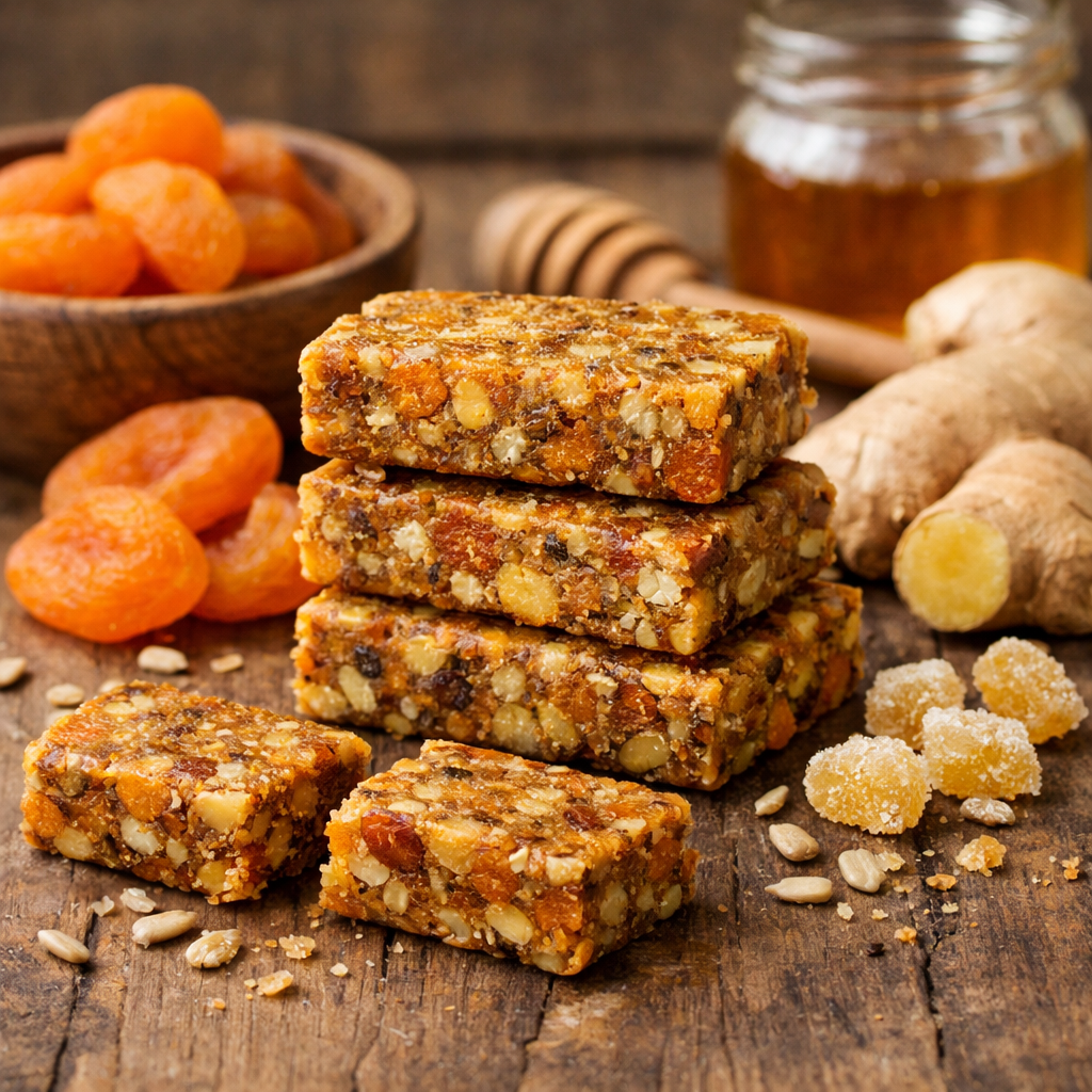 ألواح الطاقة الصحية بالمشمش المجفف والزنجبيل