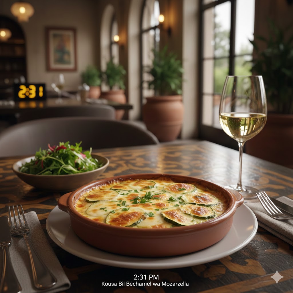 الكوسا بالبشاميل والموزاريلا وصفة شهية وسهلة