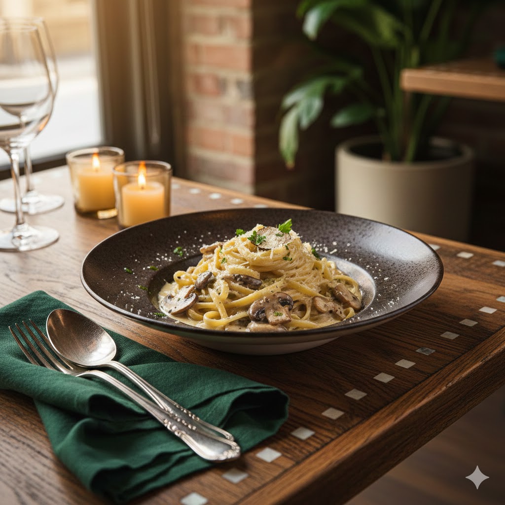 الباستا البيضاء بالكريمة والفطر: وصفة كلاسيكية بنكهة عصرية